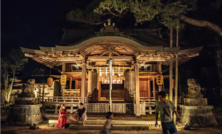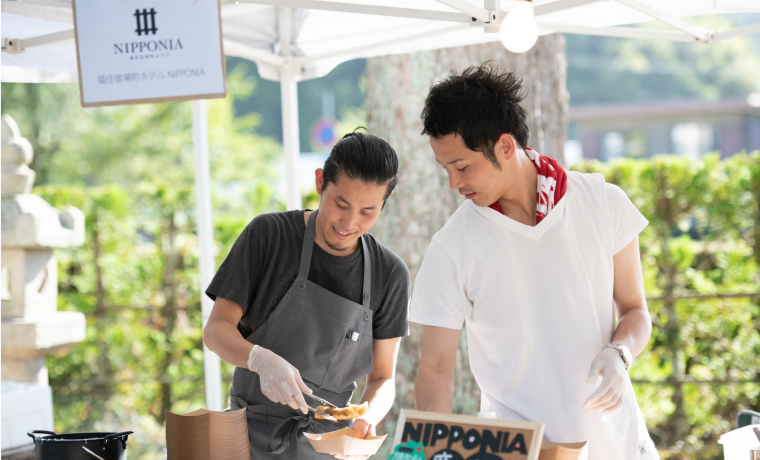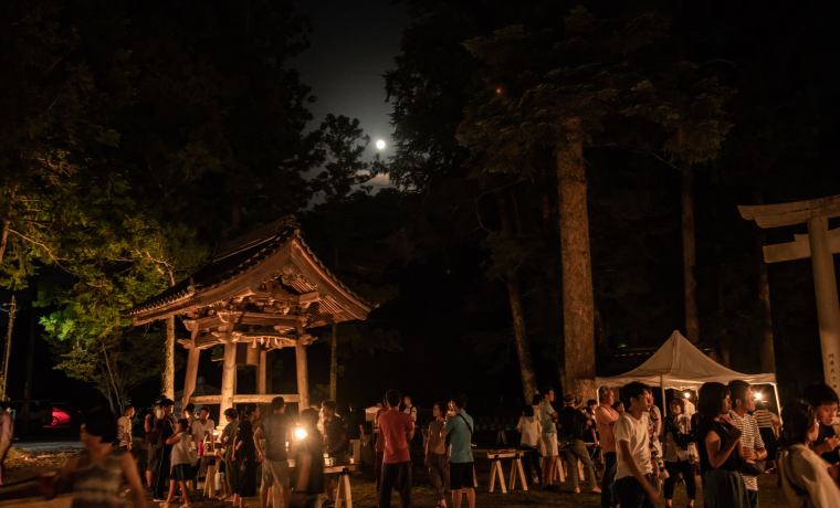 歴史的な神社で開催される、一夜限りのビアガーデン。著名な作庭家「重森美玲」氏が作庭した枯山水の日本庭園を眺め、沈む夕日を見ながら、その土地で醸されたクラフトビールを楽しむ1日は、他では絶対に体験できない特別な体験。2018年はジビエ料理をメインに、地域の料理人が腕をふるった。
