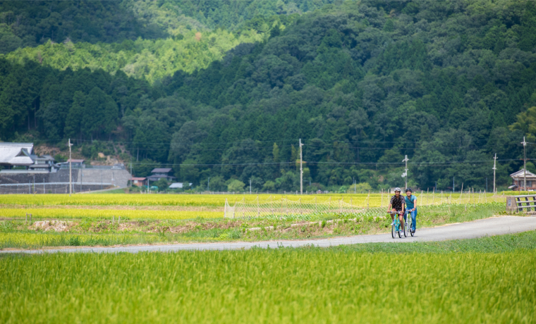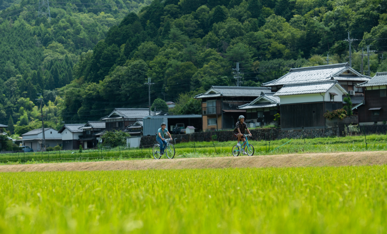 田園宿場町・福住を走り抜けるサイクルツアー”Green Cross Road“。江戸時代から受け継がれてきた農村と宿場町の景観の中を走り抜ける体験は、古き良き日本のあり方を感じさせてくれます。歴史的な神社や、田んぼを走る風の音、路地裏に広がる日本らしい小道も、そのどれもが心に残る風景です。